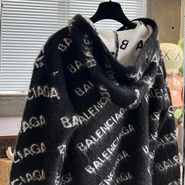 高品質バレンシアガ 偽物 ロゴ フード リブ編み ニットトップ パーカー bay09783