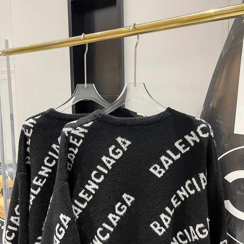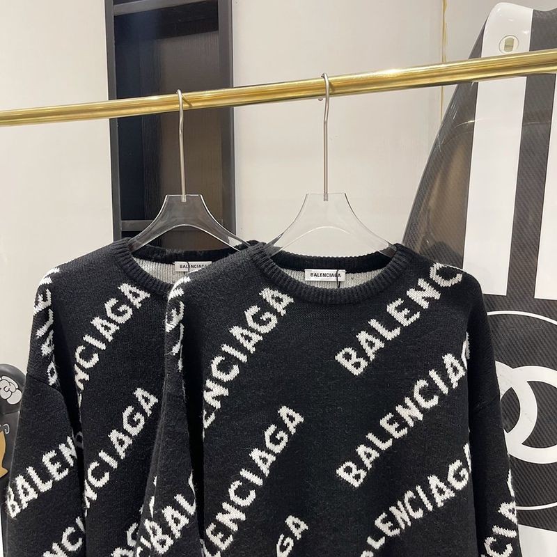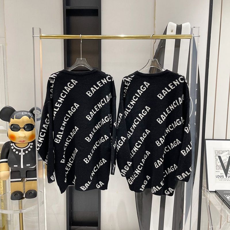 完売必至バレンシアガ スーパーコピー Allover Logo セーター ニットウェア ブラック baf75877