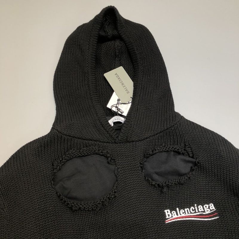 バレンシアガ Political Campaign Destroyed パーカー コピー★ニットウェア ブラック 662718T32121069