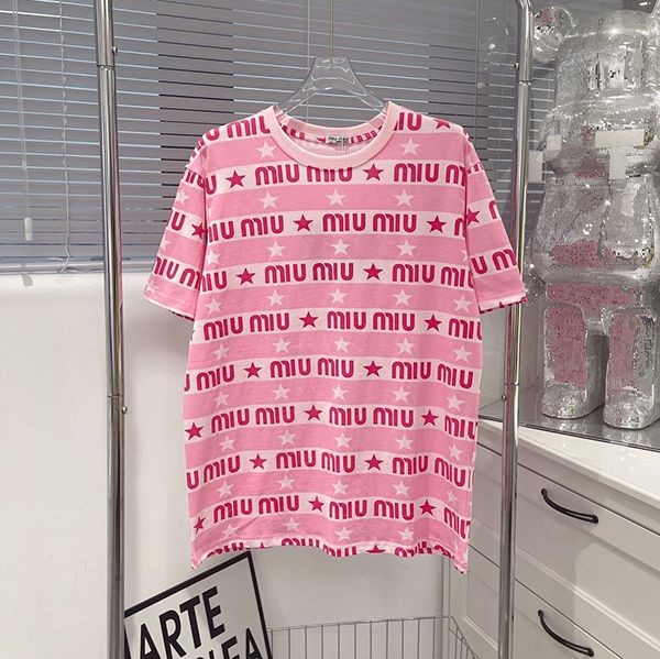日本未入荷ミュウミュウ 偽物 プリント付き ジャージーTシャツ ロゴ入り myx78182