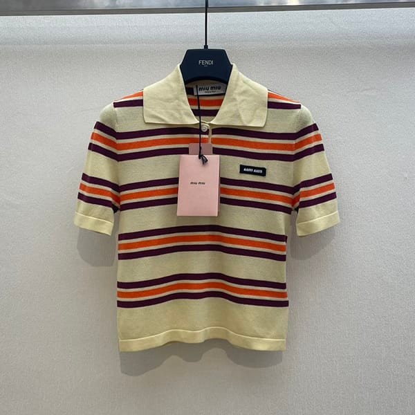人気急上昇ミュウミュウ 偽物 コットンとシルクのニットポロシャツ 2色 MML88014AX F0061SOOO