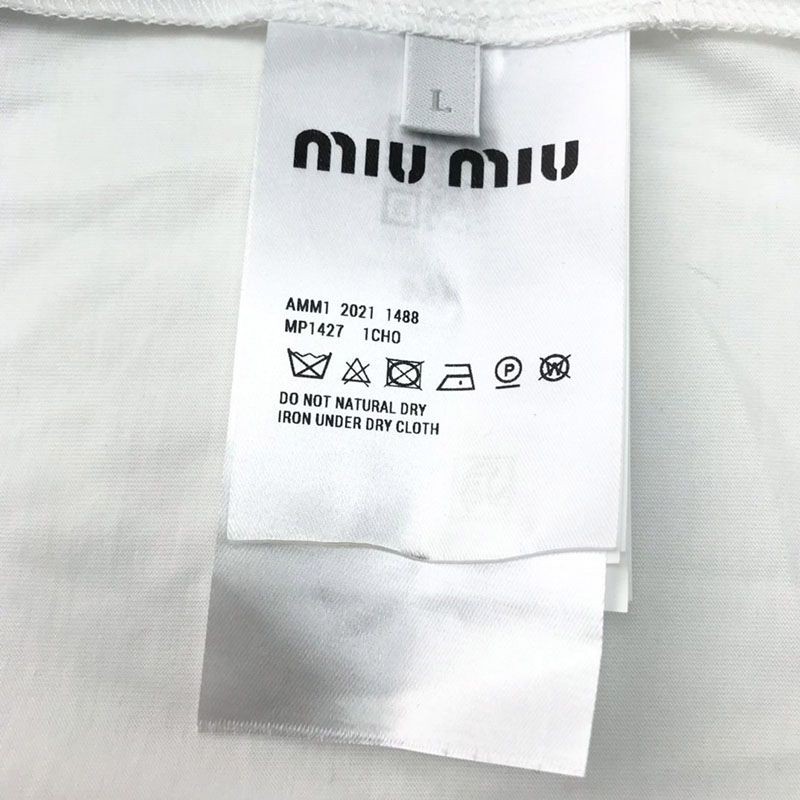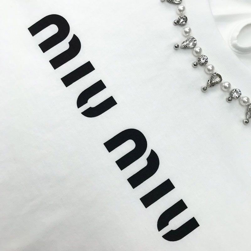 送料込ミュウミュウ 偽物★クリスタル クロップドコットンTシャツ MJL8161V6FF0009