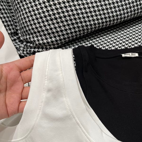 目を惹くカラーミュウミュウ スーパーコピー ロゴ コットンTシャツ 2色 myz77338