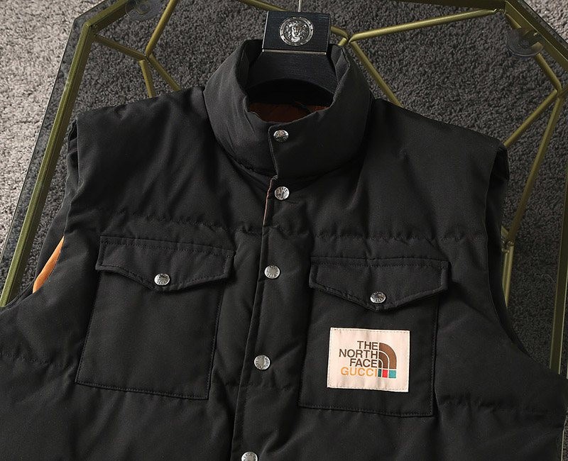 入手困難 コラボ グッチxノースフェイス コピー ダウンベスト ネイビー Nov96087