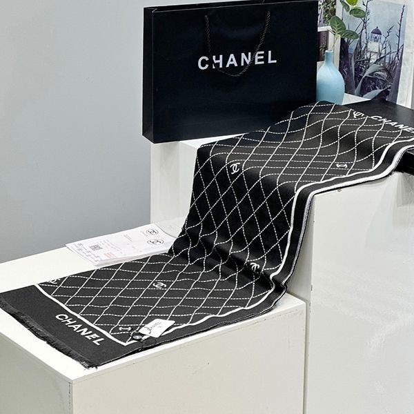 ブランド:シャネル偽物24秋冬プレ☆シャネル カシミヤ ストール 偽物 ブラック&ピンク
