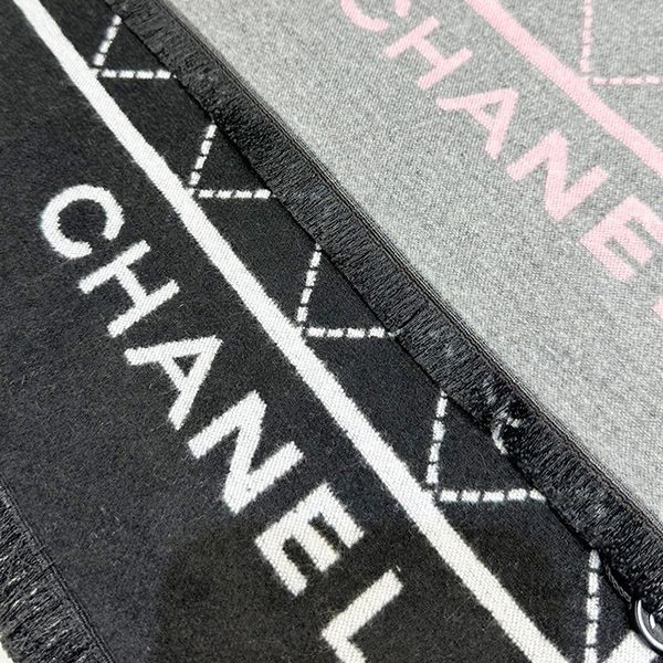24秋冬プレ☆シャネル カシミヤ ストール 偽物 ブラック&ピンク shz06520