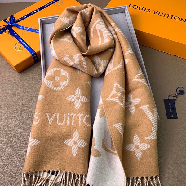 《冬ギフトに》ルイヴィトン モノグラム ウールマフラー 偽物 186×34 M77728