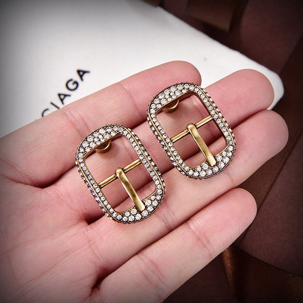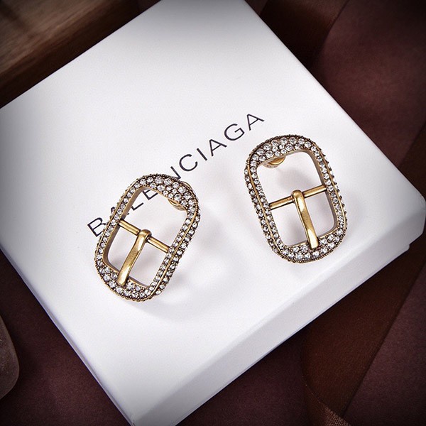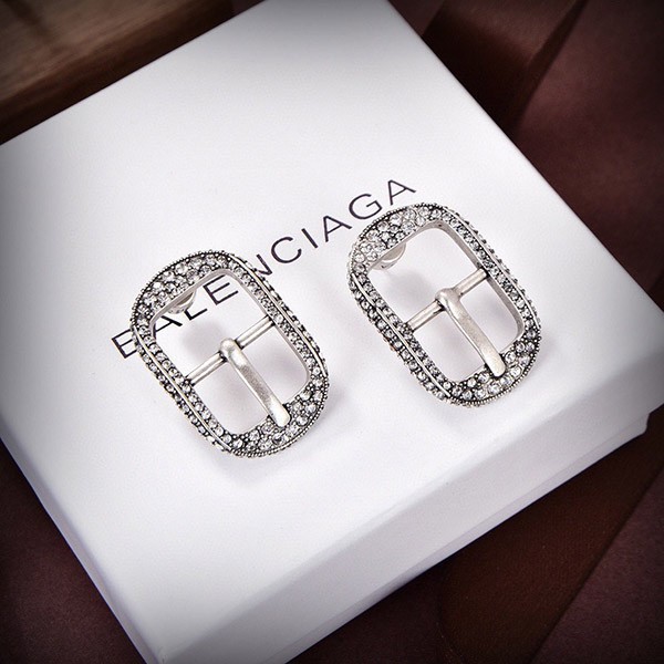 バレンシアガ 偽物☆CAGOLE バックル ラインストーン付ピアス シルバー 2色 bac61011