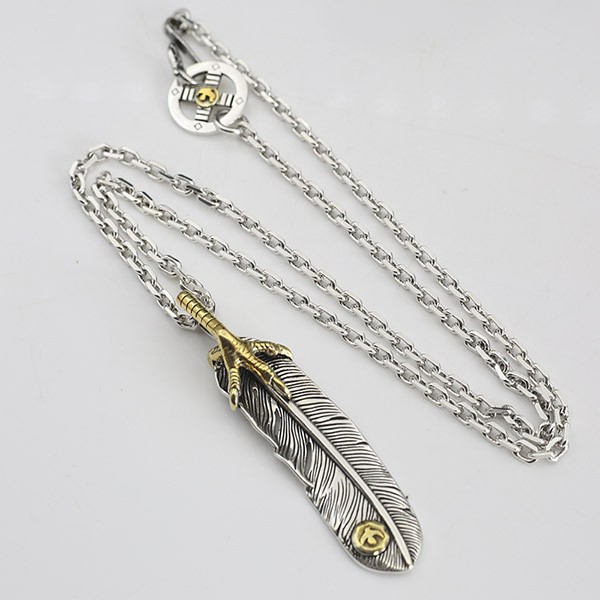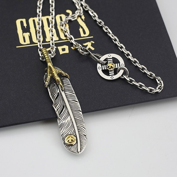 すぐ届く ゴローズ モンテカルロ 偽物 シルバー925 金爪フェザーネックレス、イーグルメタル シルバーフェザー ネックレス 送料無料 goi36987