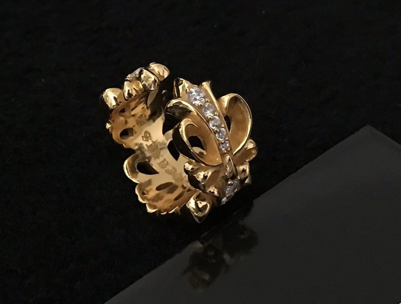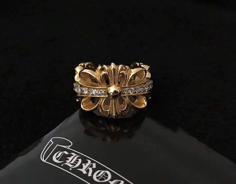 クロムハーツ フローラル 22kGold ダイアモンド ゴールド リング 偽物 Kul99750
