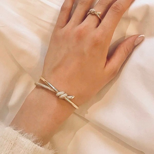 超話題!ティファニー Knot ダブル ロウ ヒンジ バングル 偽物 Tii89547