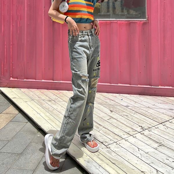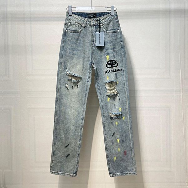 日本未入荷バレンシアガ ジーンズ デニム 偽物 ダメージ加工 インディゴ ロゴ baf82750