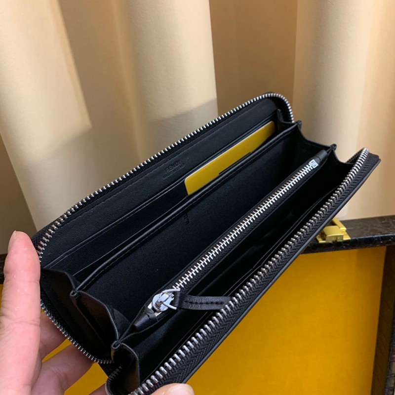 定番フェンディ ジップアラウンド 長財布 偽物 ブラック バッグ バグズ ジッパーウォレット カスタマイズ fea27541