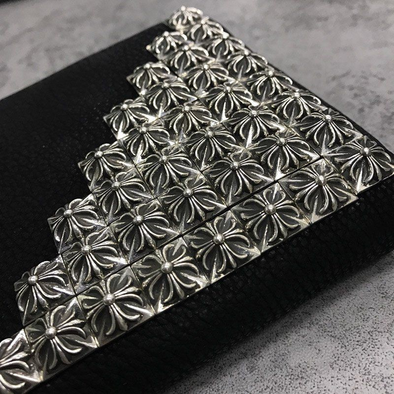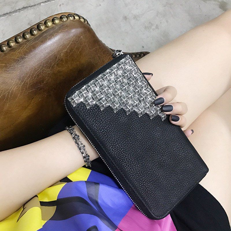追跡付き発送 クロムハーツ 偽物/ RECFピラミッド デストロイBLKレザー長財布 Kuh62681