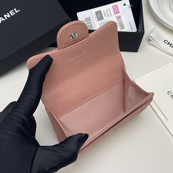 稀少シャネル ミニ財布 偽物 キャビア ライトゴールド金具 shw24353
