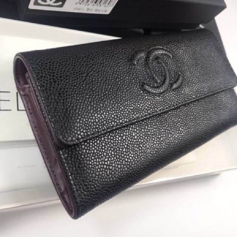人気 シャネル キャビアスキン 偽物 ココマーク 二つ折り長財布 sho97441
