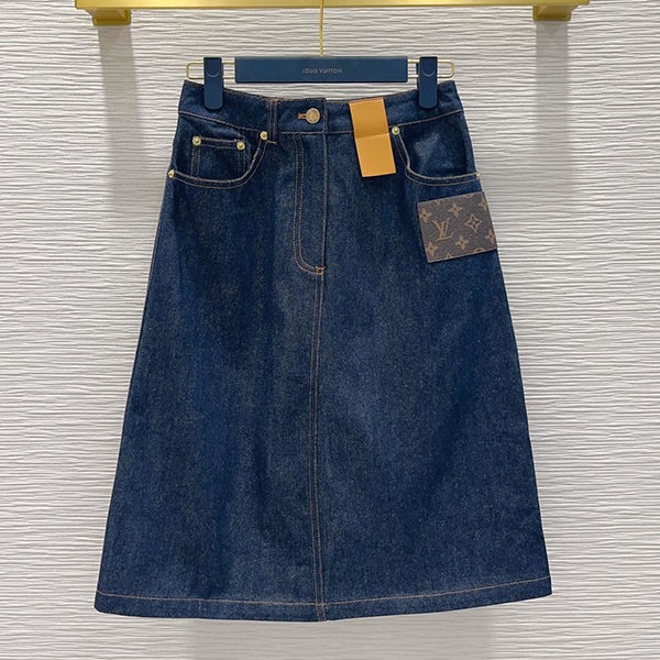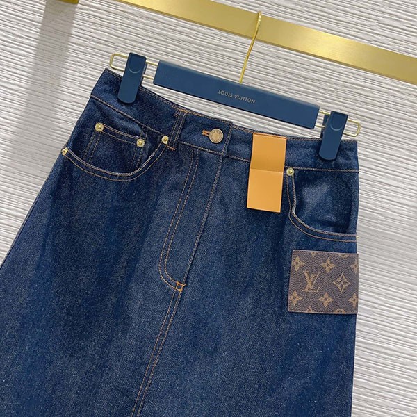 【ルイヴィトン 偽物】インディゴブルー デニムモノグラム スカート 1ABBPV