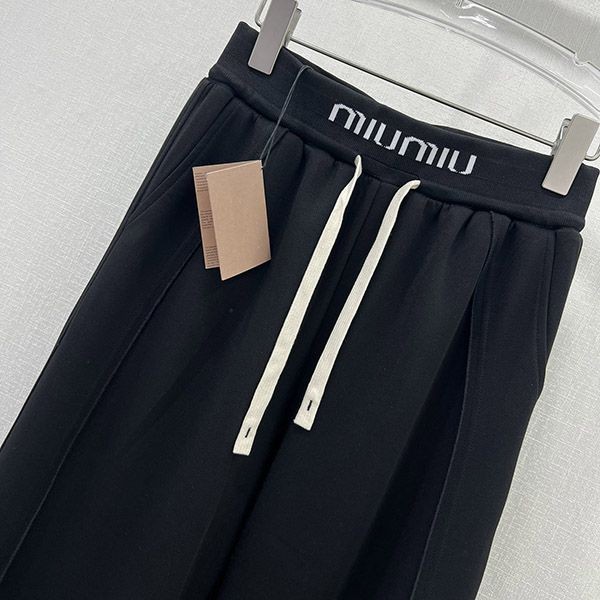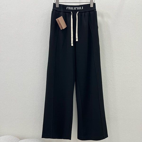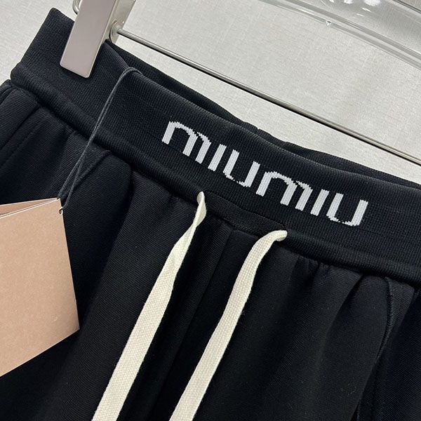 最新でオシャレ ミュウミュウ バックロゴ コットンジョギングパンツ n級 myh21579