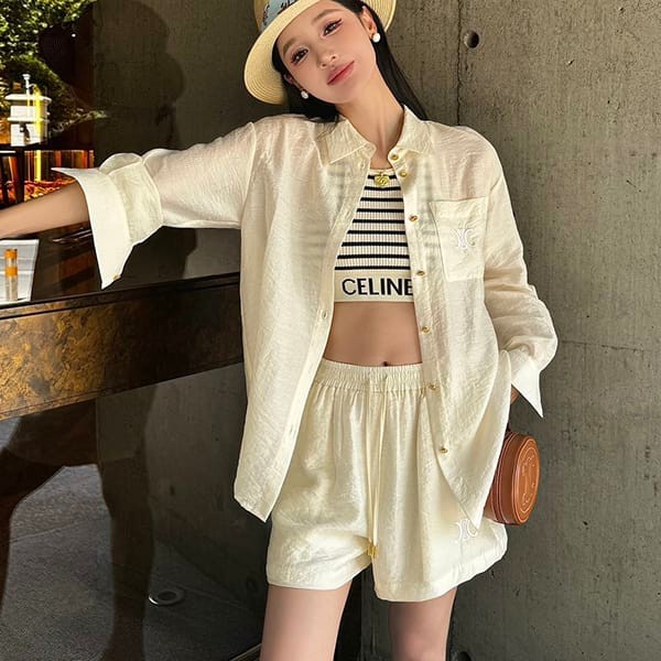 セレブ多数愛用セリーヌ マイクロ トリオンフ シャツ スーパーコピー 上下セット Cex15329