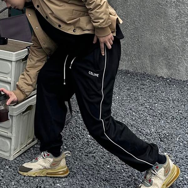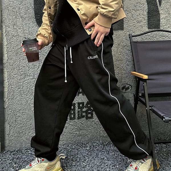 調節可能なコード付きの伸縮性ウエストとCELINEの刻印入りメタルトップ
