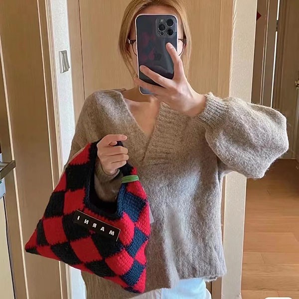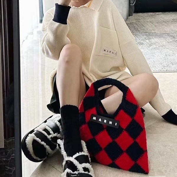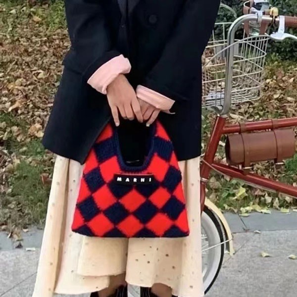 すぐ届く マルニマーケット コピー◇テックウール製 DIAMONDスモールバッグ レッド mat67258