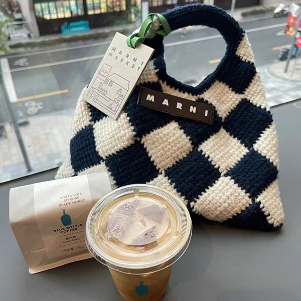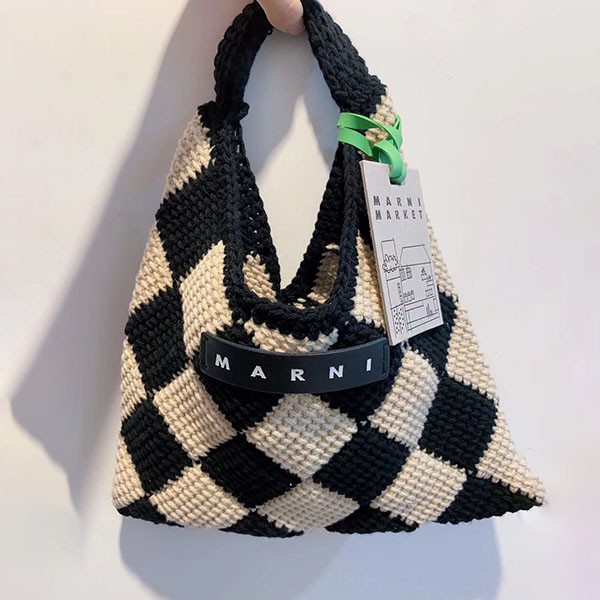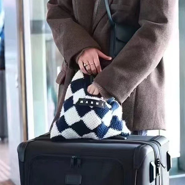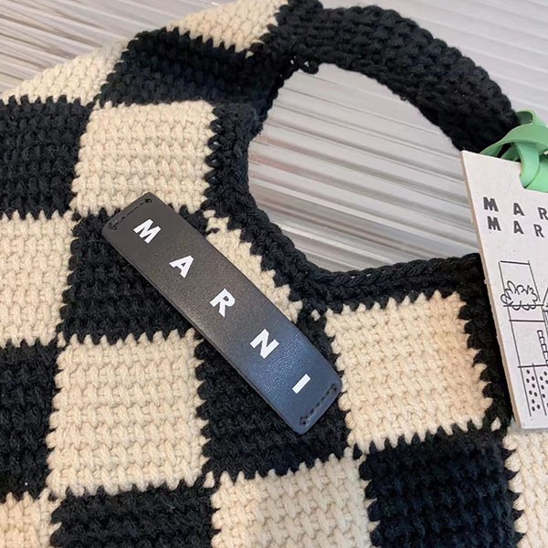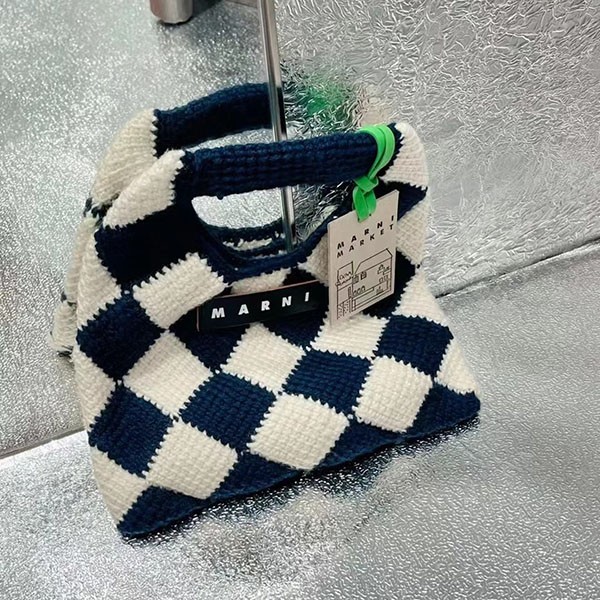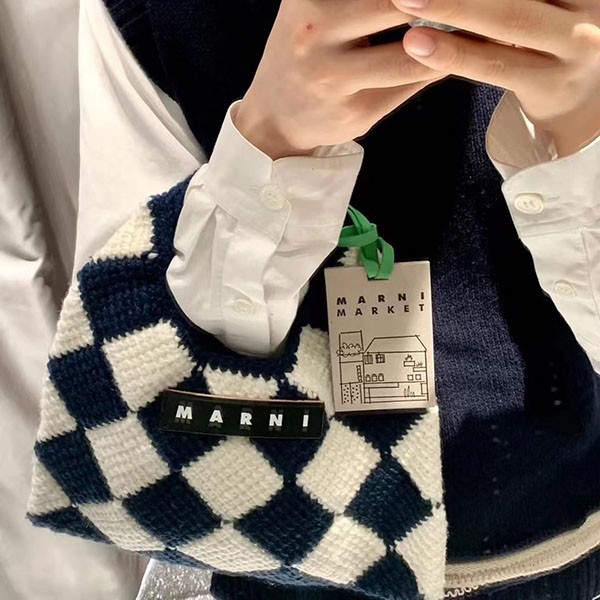マルニマーケット 偽物◇テックウール製 DIAMONDスモールバッグ ブラック mar01158