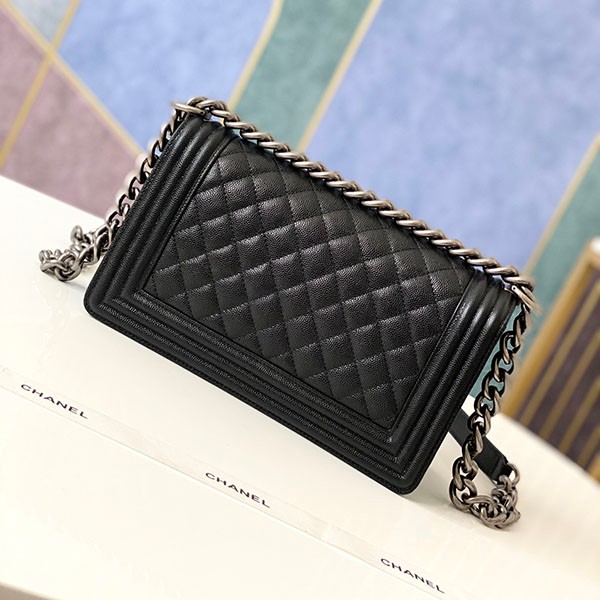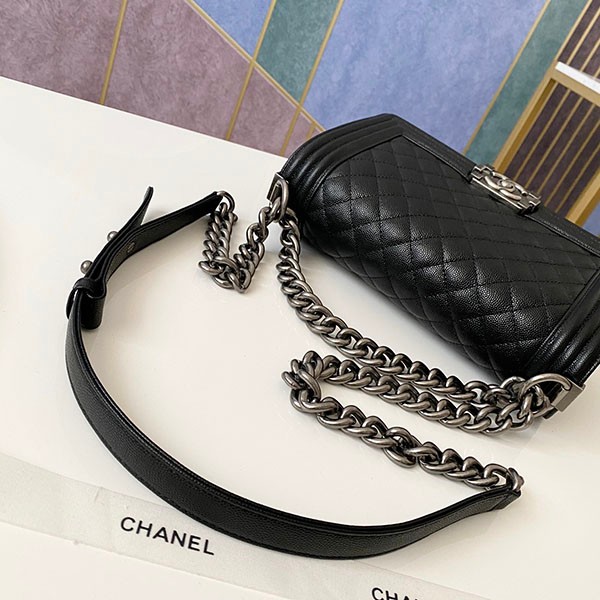 シャネル ボーイシャネル25cm 偽物 ブラック/シルバー金具 shw99193