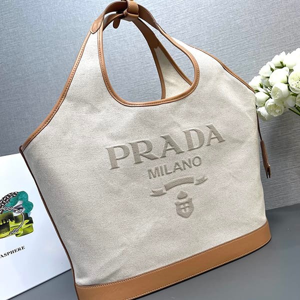 稀少プラダ パロディ リネンブレンド レザー トートバッグ ラージ 3サイズ puv47863