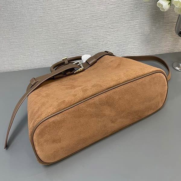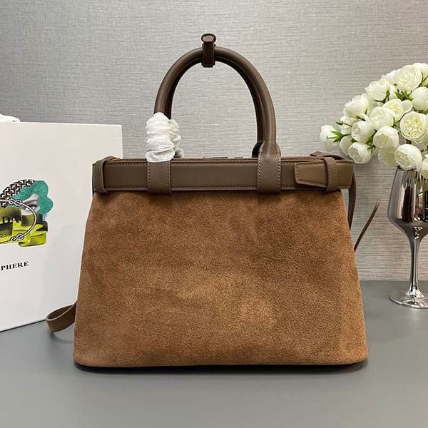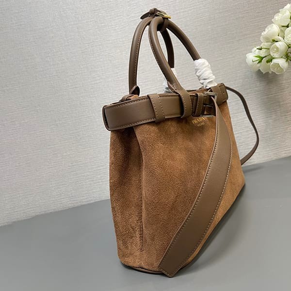 注目★プラダ 偽物 ベルト付きスエード バックル ミディアム バッグ pud34091