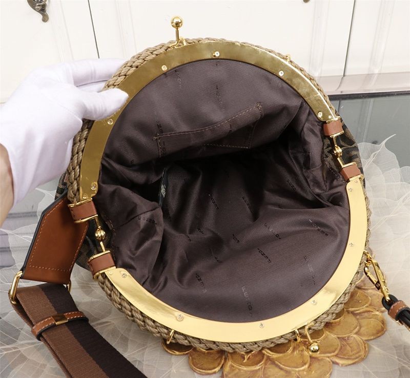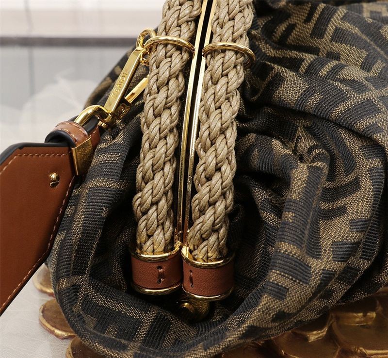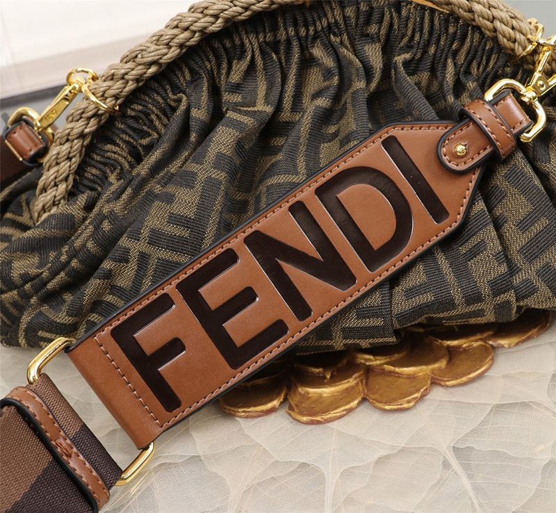 送料込フェンディ シェル 偽物 ブラウンFFファブリック ポシェット 8BP121AFKCF0A6E