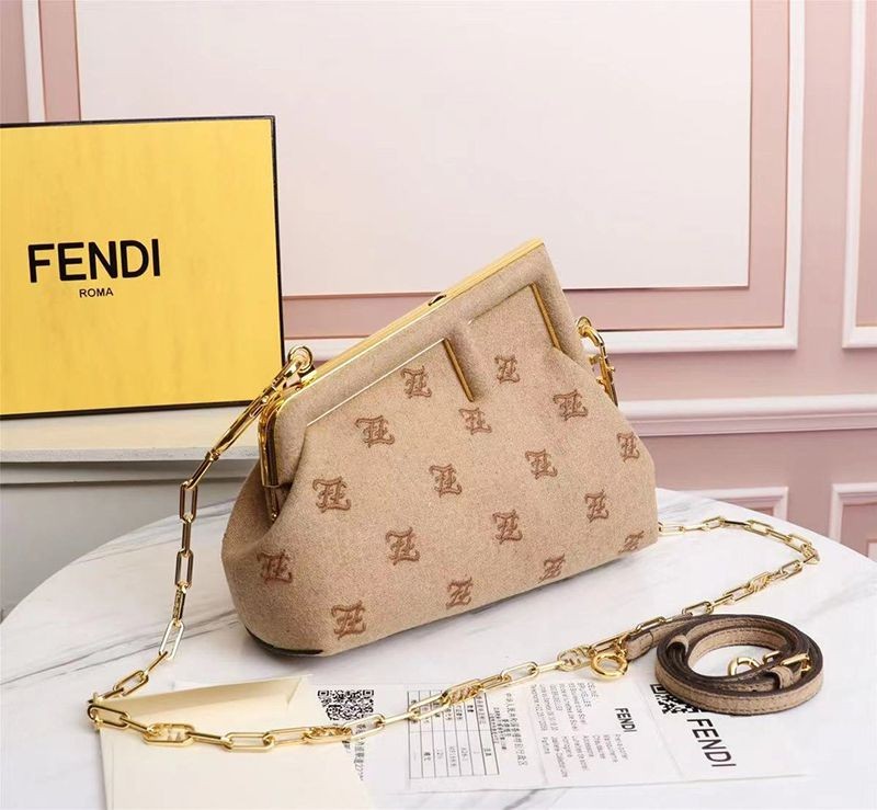 大人気!フェンディ ファースト 偽物 ミディアム ベージュフランネル バッグ 刺繍 8BP127AHNGF0J2D