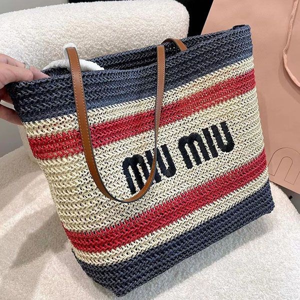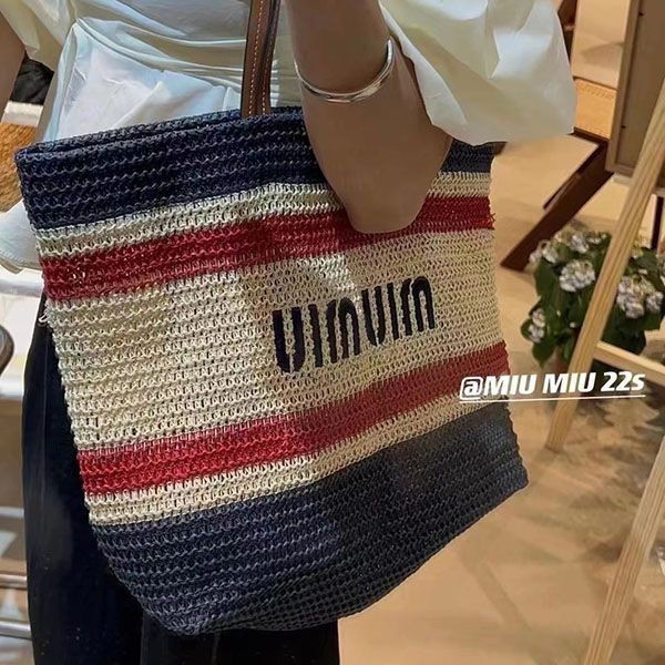 超話題!【ミュウミュウ】ラフィアxコットン トートバッグ 偽物 mys32015