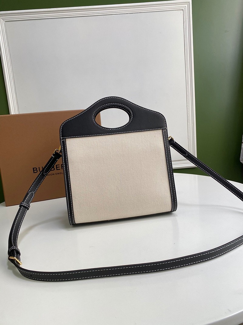 日本未入荷【バーバリー ポケットバッグ 偽物】ミニ ツートン キャンバス&レザー Baj66149