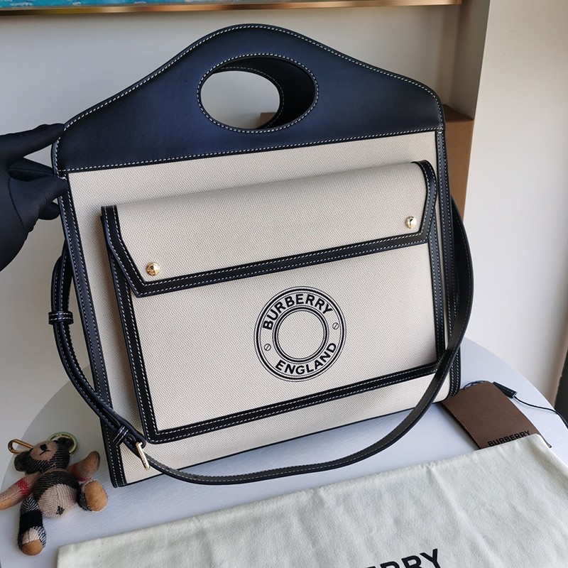 人気急上昇バーバリー ショルダーバッグ 偽物 ミニ ツートン キャンバス&レザー ポケットバッグ Baz55041
