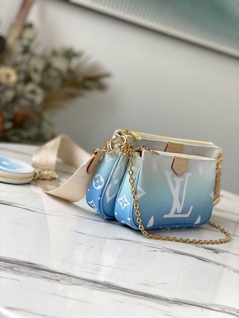 可愛いルイヴィトン ミュルティポシェットアクセソワール コピー★キャンバス ショルダーバッグ♪ブルー M57633