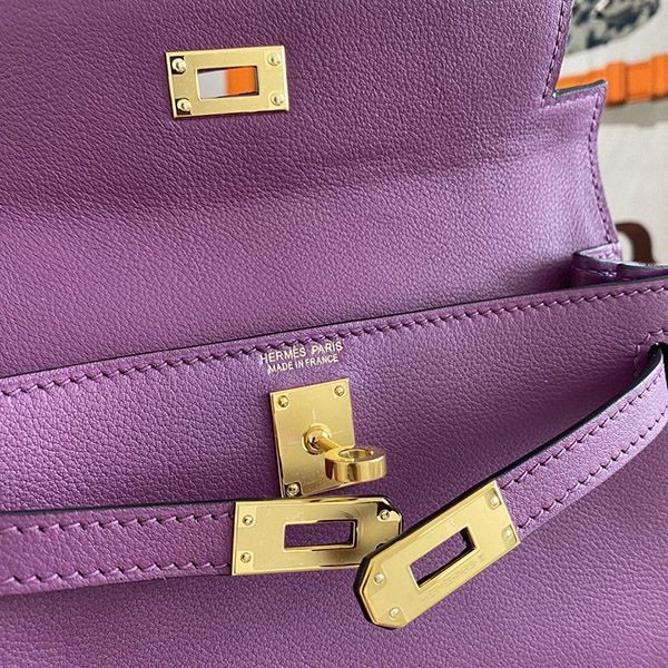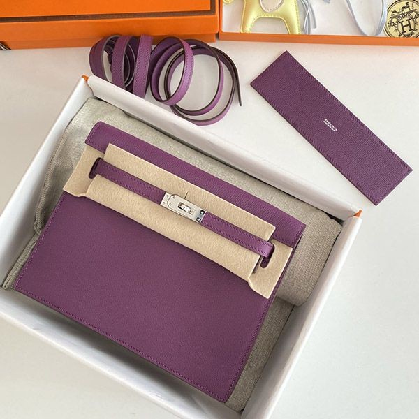 大人気!エルメス ケリーダンス 偽物 22cm パープル 内縫 2色金具 eru83538