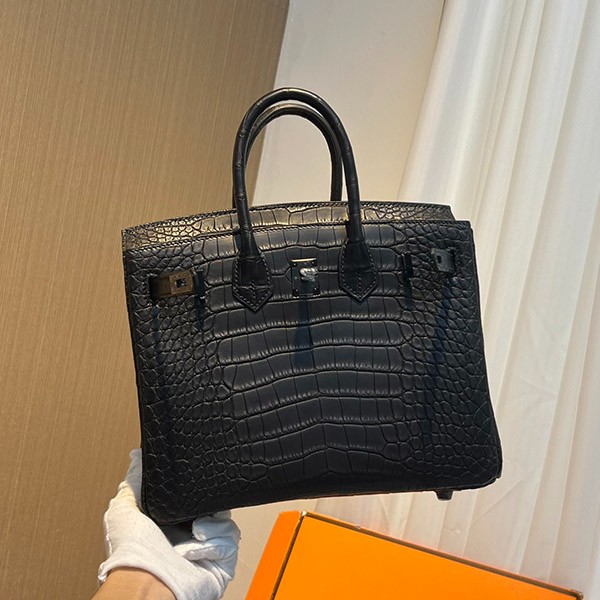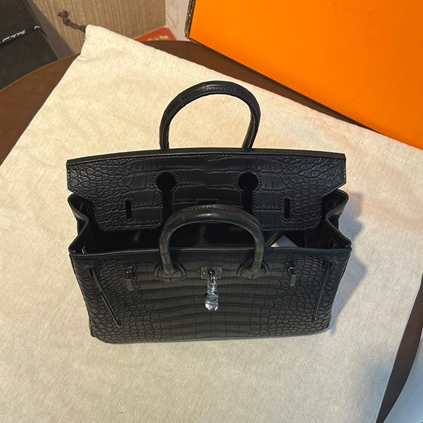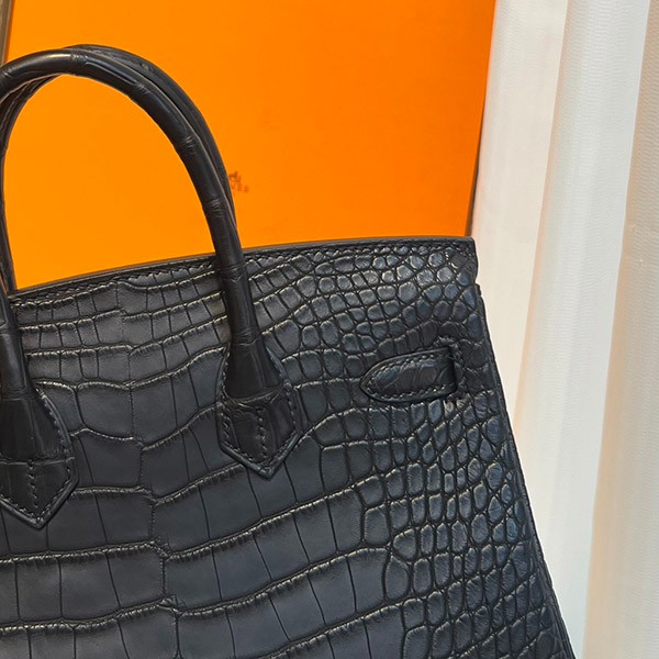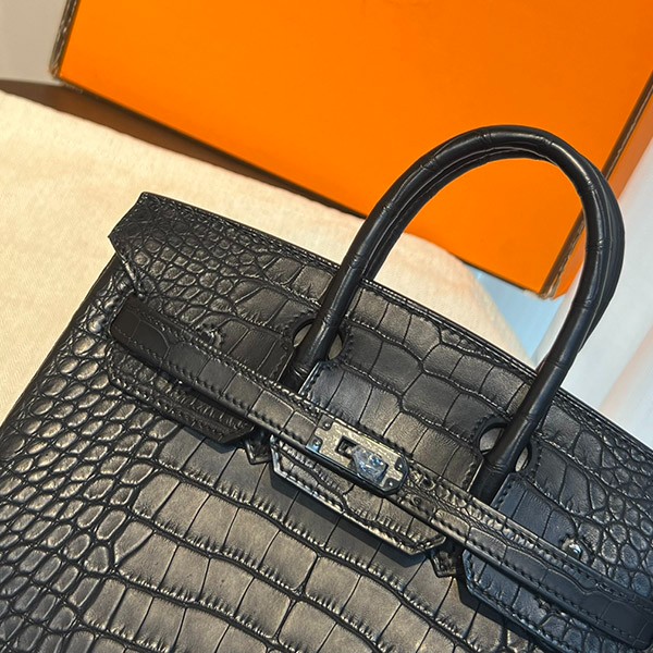 エルメス バーキン25 アリゲーターマット ソーブラック 偽物 ブラック金具 2011年 erg44462