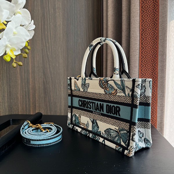【繊細な蝶の刺繍が可愛い★】ディオール ブックトート 偽物 バッグ ミニ S5573CESR_M933