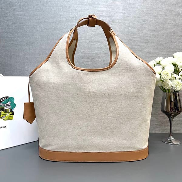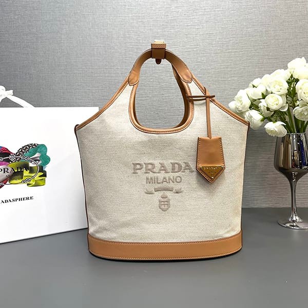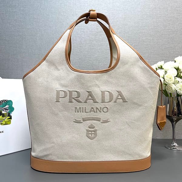 稀少プラダ パロディ リネンブレンド レザー トートバッグ ラージ 3サイズ puv47863