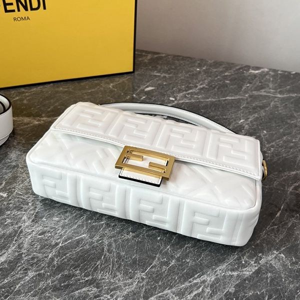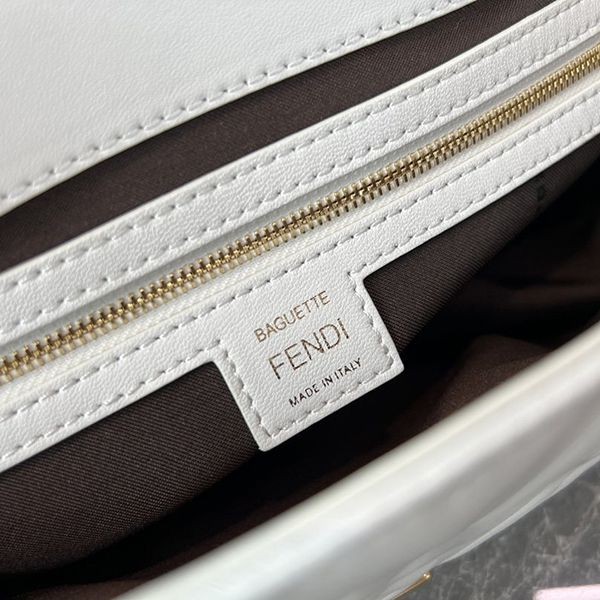 フェンディ ホワイトレザー バゲット 偽物 ラージ ショルダーバッグ fey23095