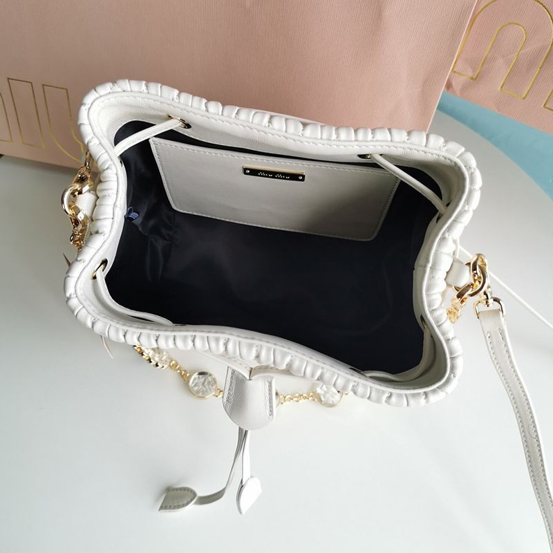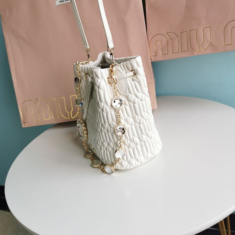 入手困難ミュウミュウ クリスタルチェーン 偽物☆キルトバケットバッグ myz60068