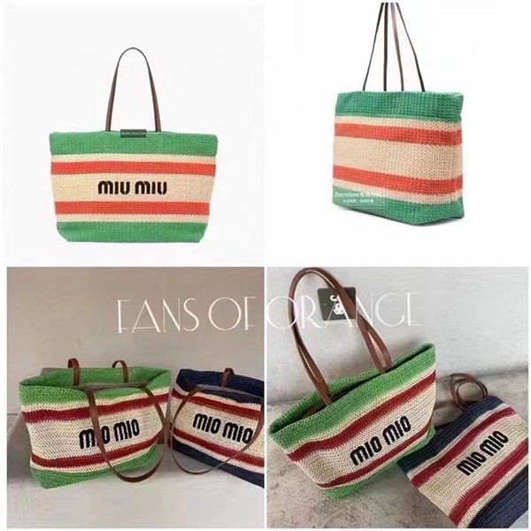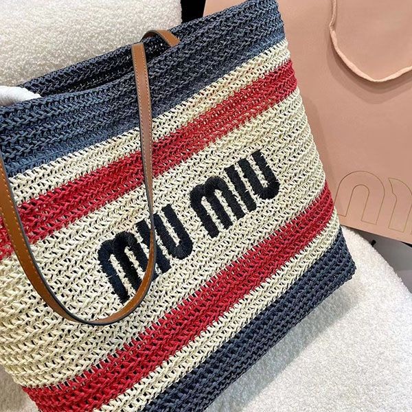 超話題!【ミュウミュウ】ラフィアxコットン トートバッグ 偽物 mys32015