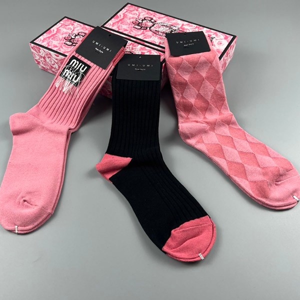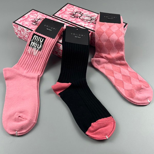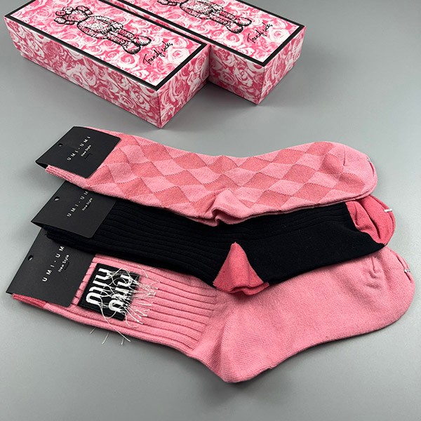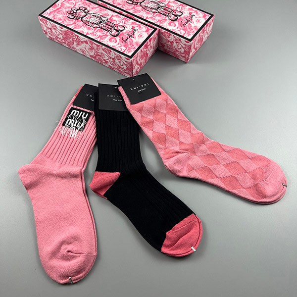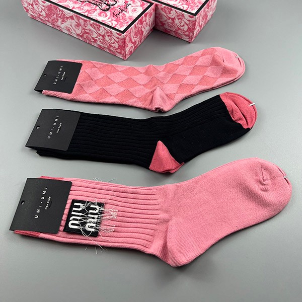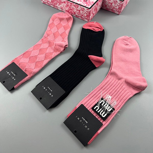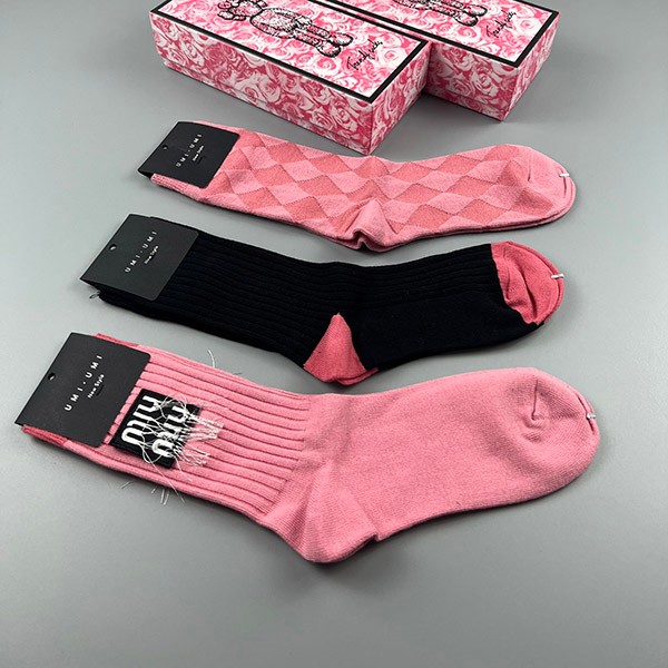 ミュウミュウ ソックス 偽物 ロゴ入りコットン 三足 myl48733