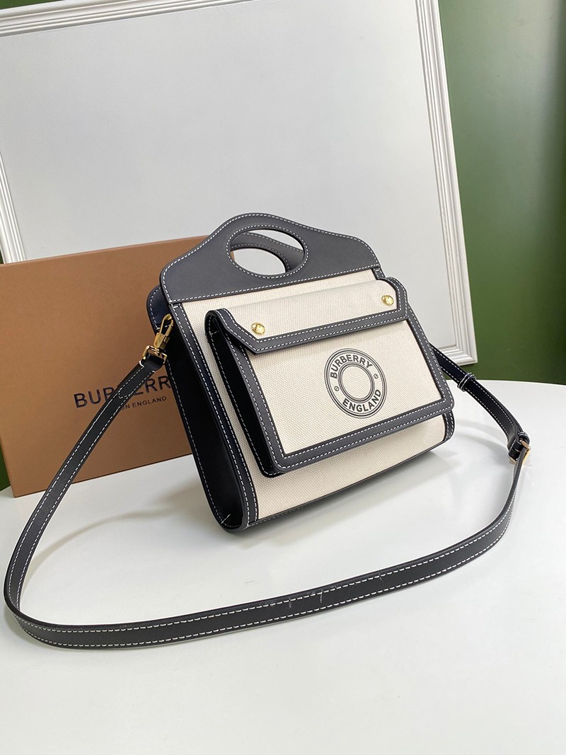 日本未入荷【バーバリー ポケットバッグ 偽物】ミニ ツートン キャンバス&レザー Baj66149