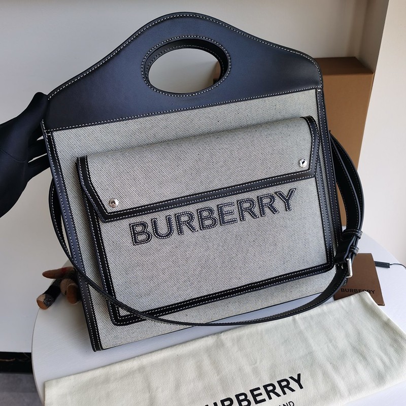 春もの新作バーバリー ショルダーバッグ コピー ミニ ツートン キャンバス&レザー ポケットバッグ Bal68896