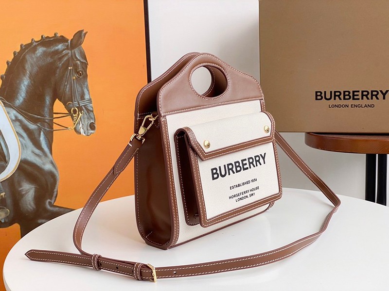 《大人気》【バーバリー ポケットバッグ 偽物】ミニ ツートン キャンバス&レザー Bat47267