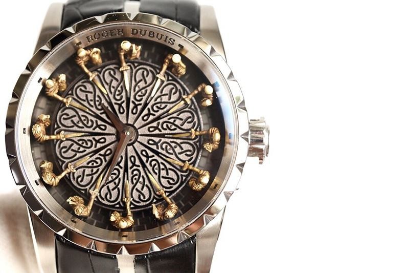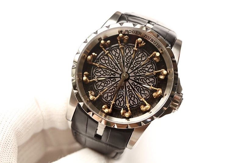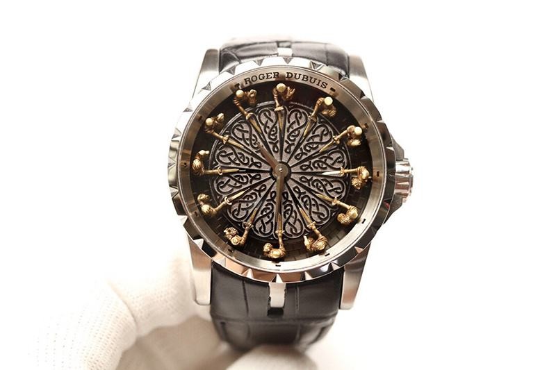 稀少ロジェデュブイ ナイツ オブ ザ ラウンドテーブル 偽物 ダマスカスチタン ブラック 45MM ron74068