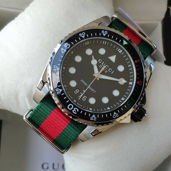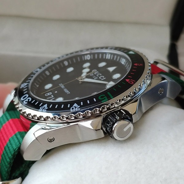 グッチ コピー 腕時計 メンズ ダイブ 45mm ブラック×グリーン×レッド YA136209A