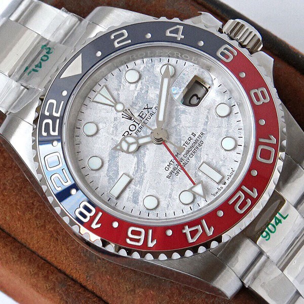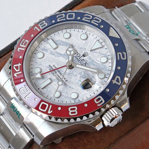 【関税込】ロレックス GMTマスター2 スーパーコピー 自動巻き18Kホワイトゴールド メンズ シルバー 文字盤タイプ隕石 126719BLRO