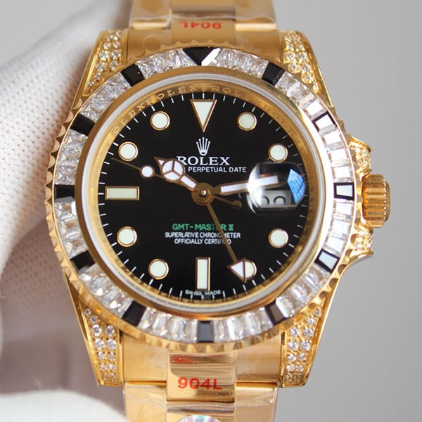 関税負担なしロレックス 偽物 GMTマスター2 自動巻き 18Kイエローゴールド メンズ ブラック 116758SANR